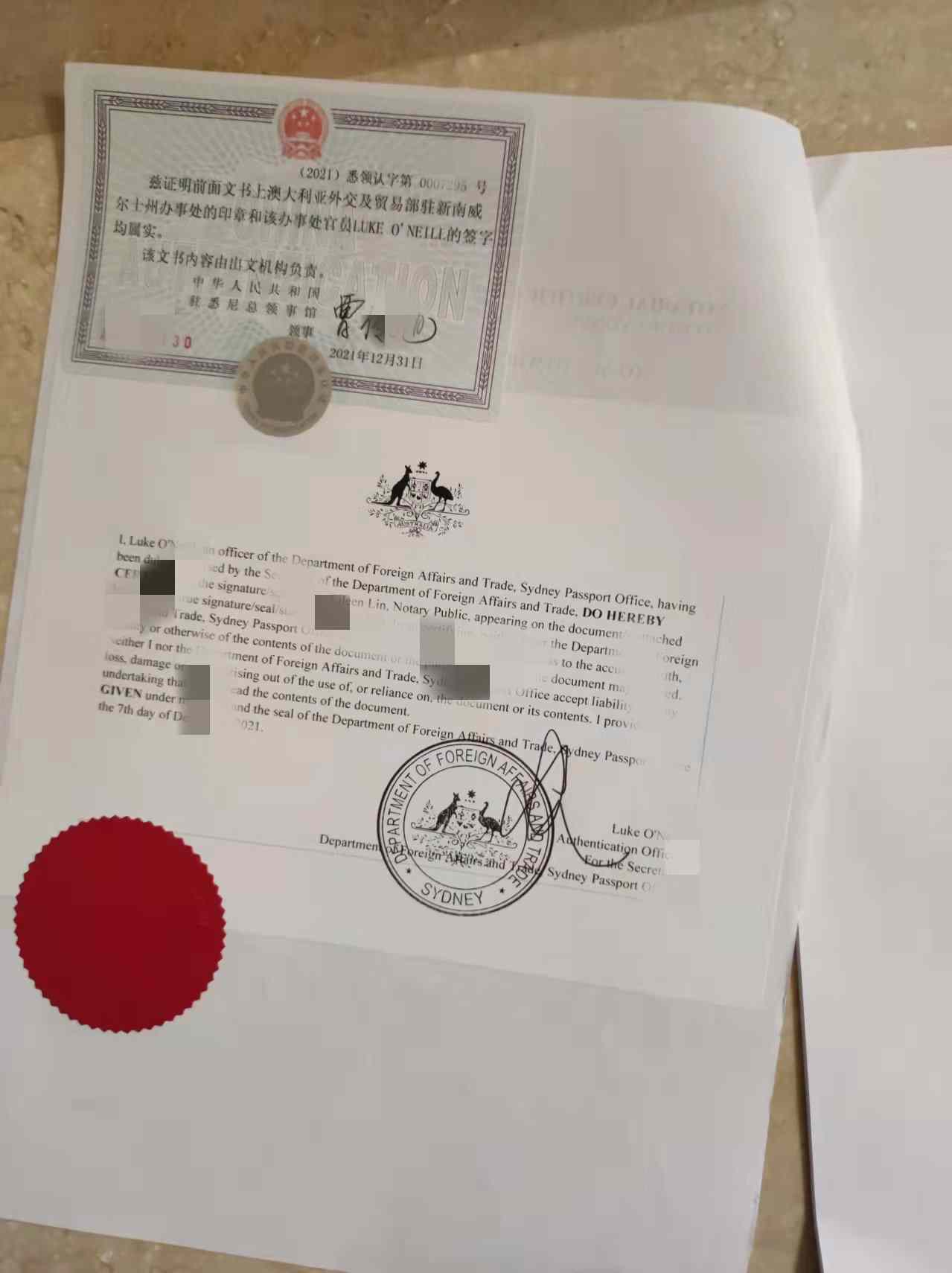 之前有對(duì)年輕的情侶去澳大利亞墨爾本領(lǐng)證結(jié)婚了,回來后準(zhǔn)備將老房子轉(zhuǎn)賣,重新買新房,但被要求澳大利亞結(jié)婚證需要做公證認(rèn)證才可以在國內(nèi)使用,當(dāng)時(shí)聯(lián)系到易代通使館認(rèn)證網(wǎng)為其辦理了他們的澳大利亞結(jié)婚證公證認(rèn)證。辦理澳大利亞結(jié)婚證公證認(rèn)證需要提供兩份文件:澳大利亞結(jié)婚證掃描件和夫妻雙方護(hù)照掃描件,然后遞交至澳大利亞公證人公證,澳大利亞外交部認(rèn)證,中國駐澳大利亞使館認(rèn)證。
