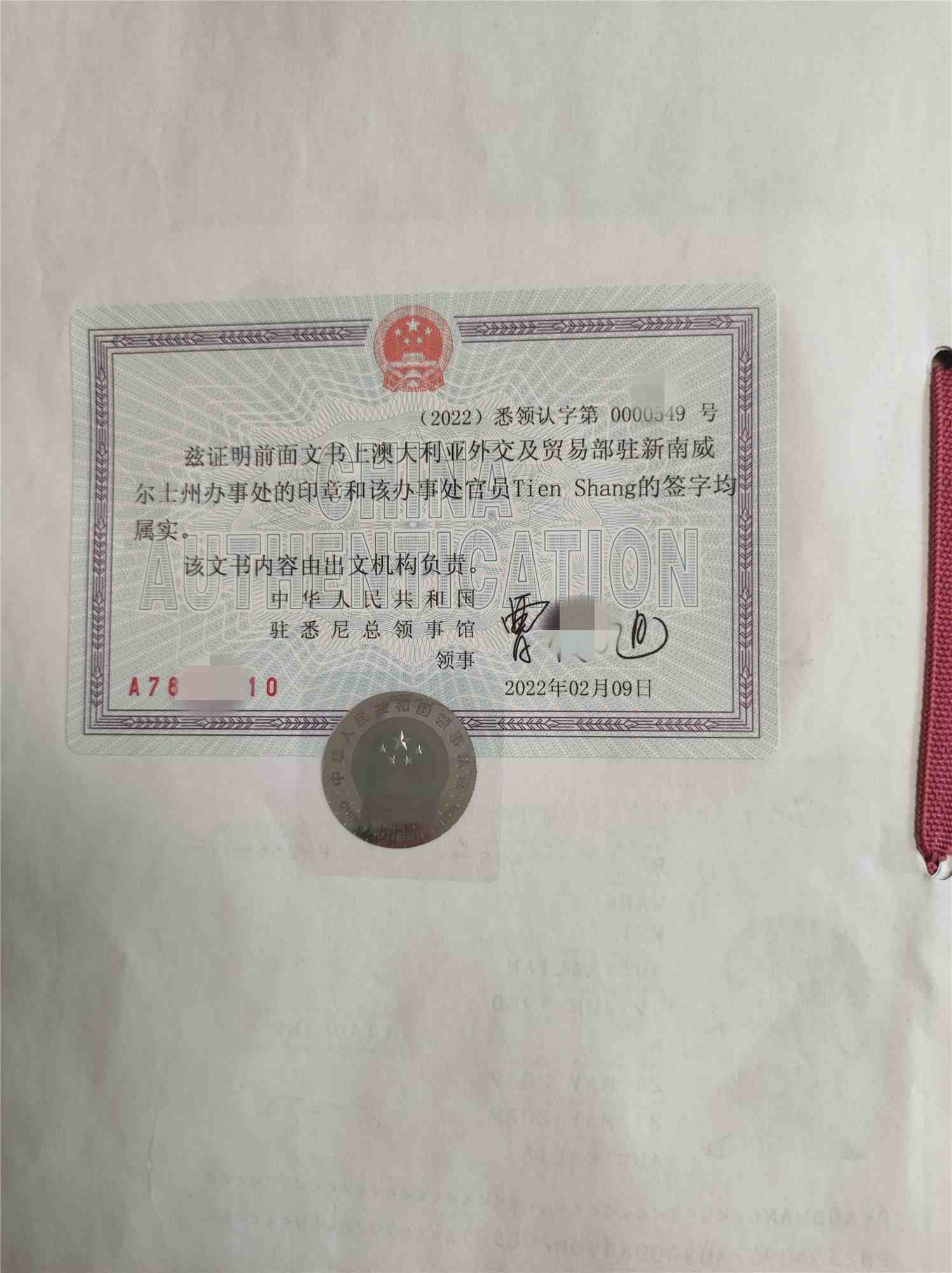 外交部認(rèn)證:辦理機(jī)關(guān)只受理經(jīng)過公證之后的文件,外交部官員主要是對(duì)文件上公證律師的簽名和蓋章的屬實(shí)性進(jìn)行核實(shí),并在文件粘貼上卡片并簽字和蓋章。