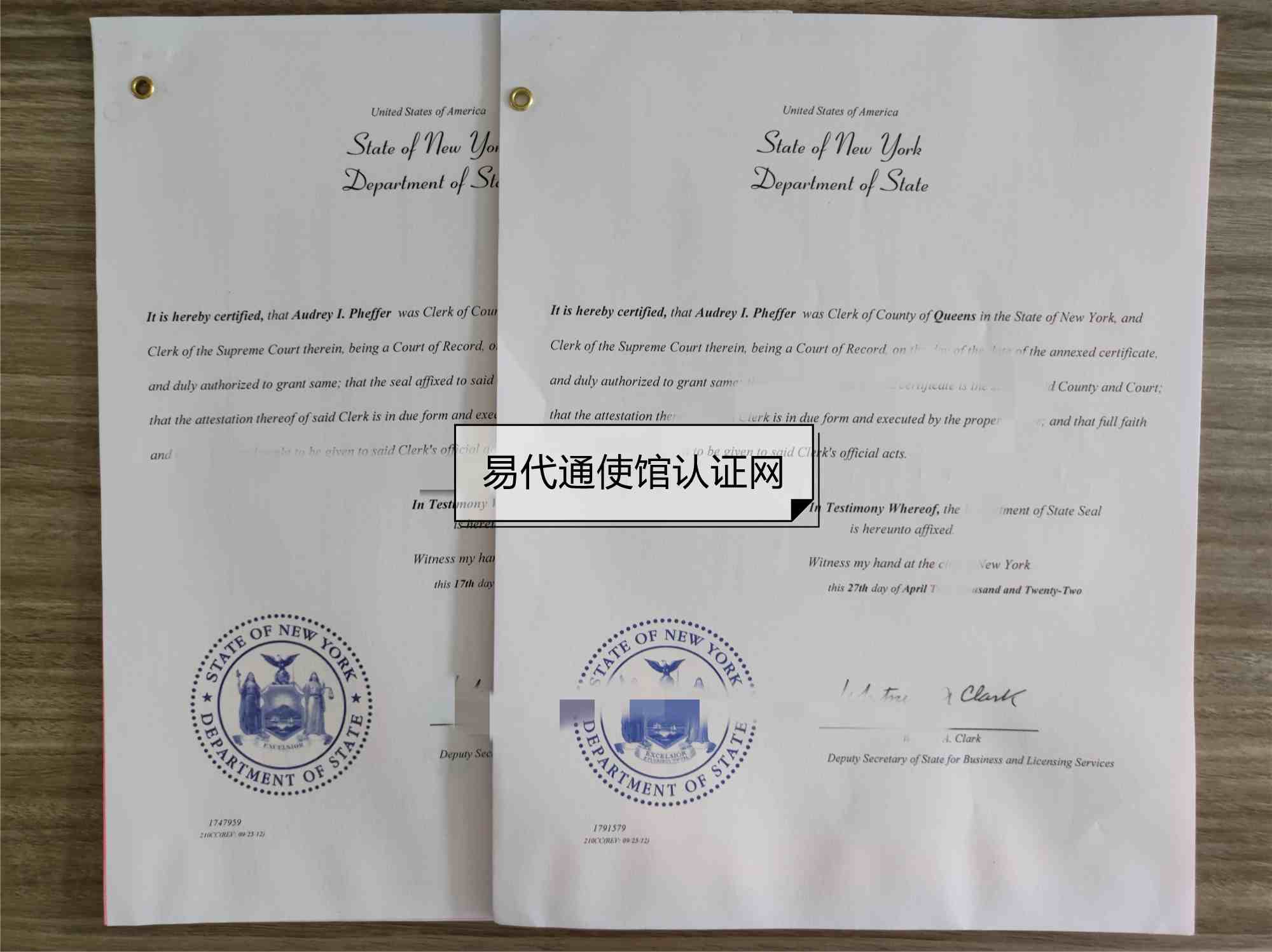 認證流程:美國公證人公證,美國州務卿認證,中國駐美國使館認證