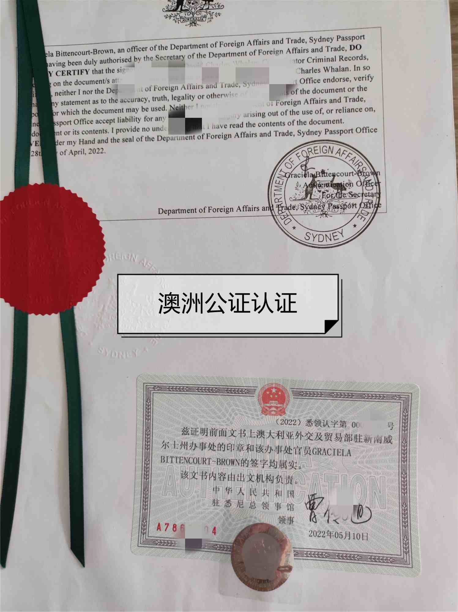 3、最后把文件送往中國駐澳洲使館辦理認證,領(lǐng)事官員主要是對文件上公證律師和外交貿(mào)易部官員的簽字和蓋章進行確認,再次在文件上蓋章和簽字確認。