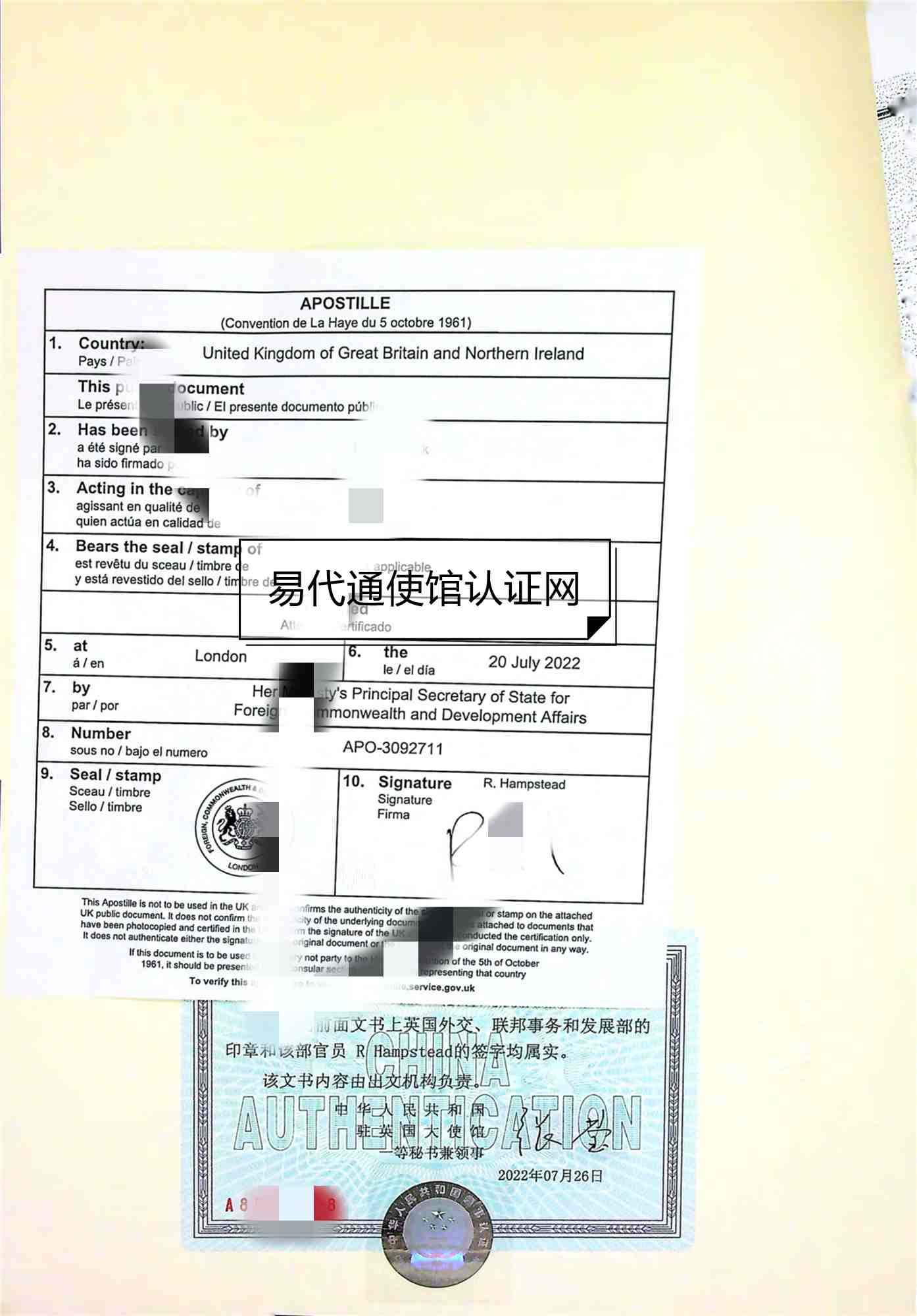 3、然后送往中國駐英國領(lǐng)事使館進行認證